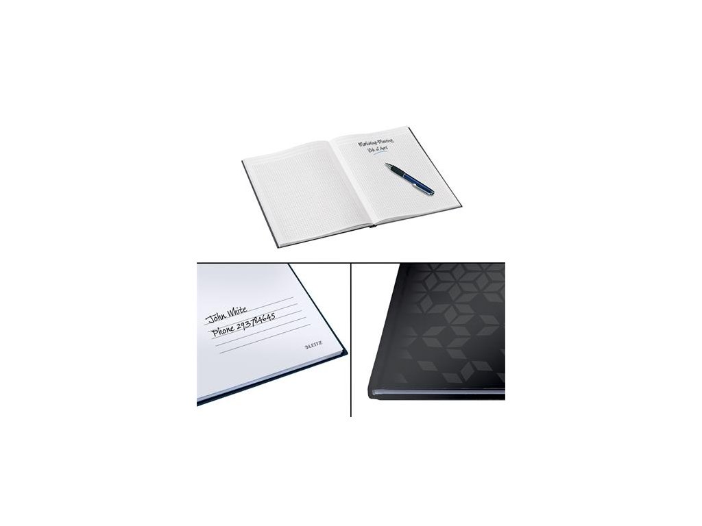 Záznamová kniha, A5, štvorčeková, 80 listov, tvrdá obálka, LEITZ "Wow", čierna