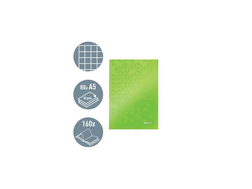 Záznamová kniha, A5, štvorčeková, 80 listov, tvrdá obálka, LEITZ "Wow", zelená