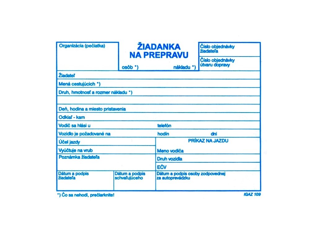 | Kategória: | tlačivá Dopravné |