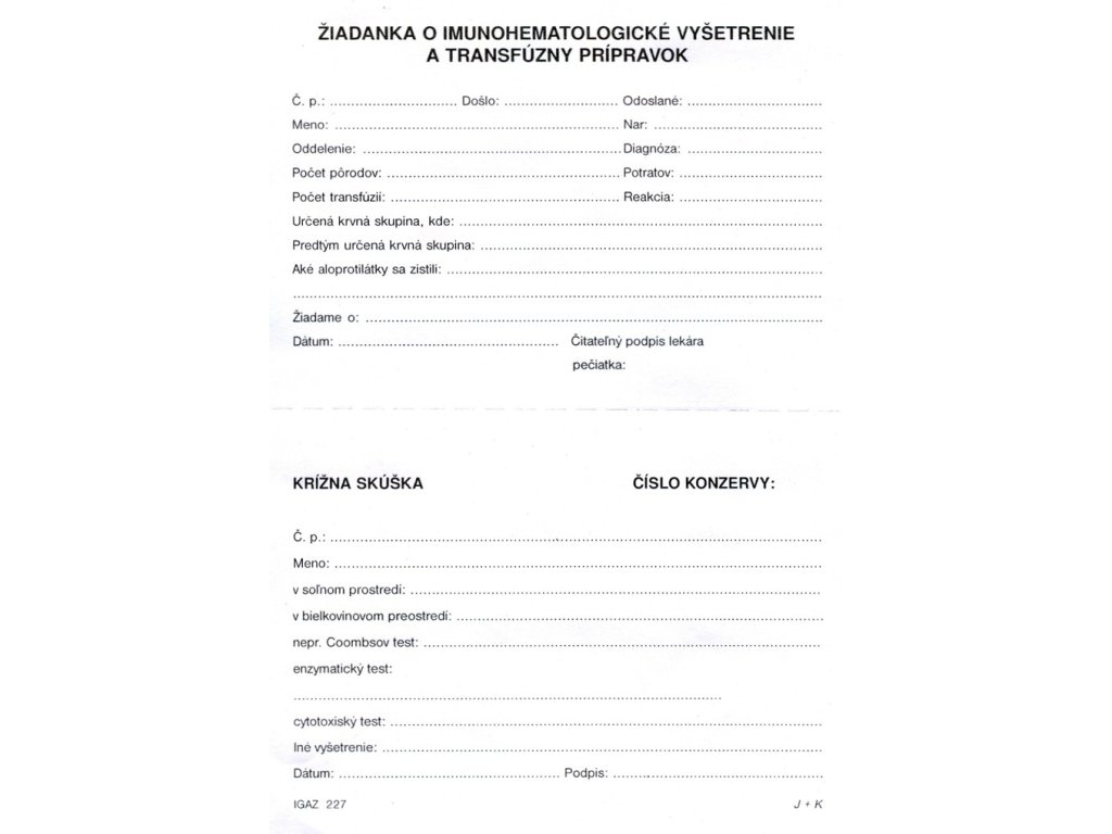 Žiadanka o imunohematol.vyšet.a transf.p