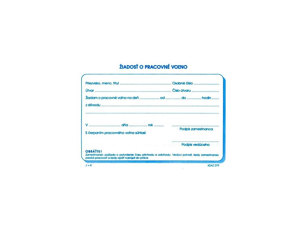 Žiadosť o pracovné voľno A6 blok