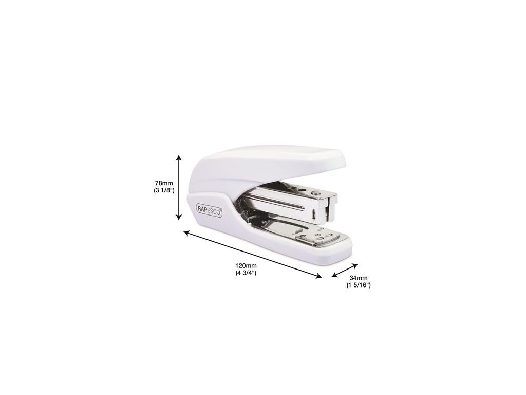 - stolová zošívačka - plastové telo, kovová konštrukcia - zhora dopĺňateľná - kapacita: 25 listov - spinky: 26/6, 24/6 - plnené: nie - ploché zošívanie: nie - hĺbka zošívania: 59 mm - nastaviteľná hĺbka zošívania: nie - znížené vynaloženie sily: 60% - zabudovaná rozošívačka: nie - nástenkové zošívanie: nie - otvorené zošívanie: áno - farba: biela - rozmery: 120 x 34 x 78 mm - 15 ročná záruka Značka: RAPESCO Výrobca: Rapesco-Tacwise BV Adresa: Kraijenhoffstraat, 137A, 1018RG Amsterdam, Netherlands Web: www.rapesco.com Email: support@rapesco-tacwise.nlDodatočné parametre