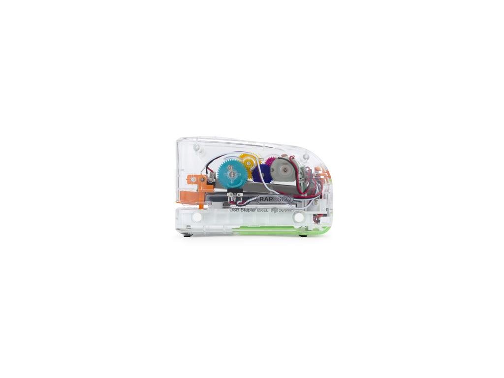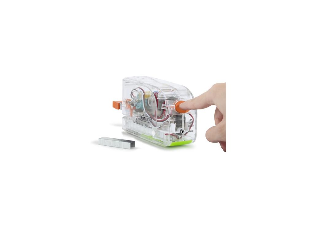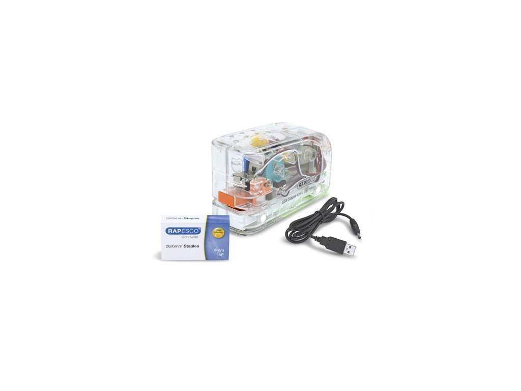 Zošívačka, 26/6, 15 listov, elektrická, s USB nabíjačkou, RAPESCO "626EL", priehľadná