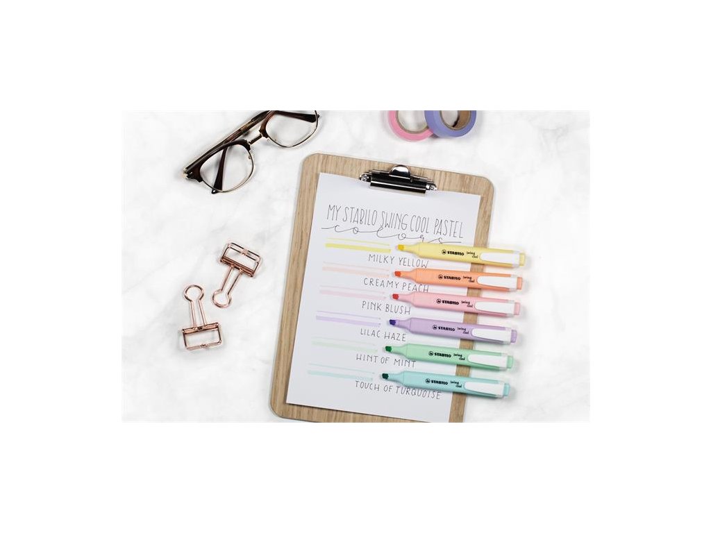 plochý, tenký zvýrazňovač vhodný do vrecka v elegantnej pastelovej farbe farba písma tiež pastelová pohodlne sa zmestí aj do peračníka protišmykový úchyt bez uzáveru nevyschne až 4 hod uzáver s ventilom atrament na vodnej báze zrezaný hrot (1-4 mm) Značka: STABILO Výrobca: STABILO international GmbH Magyarországi Fióktelepe Adresa: 1033 Budapest, Szőlőkert köz 7/a., Hungary Web: www.stabilo.hu Email: info.hu@stabilo.comDodatočné parametre
