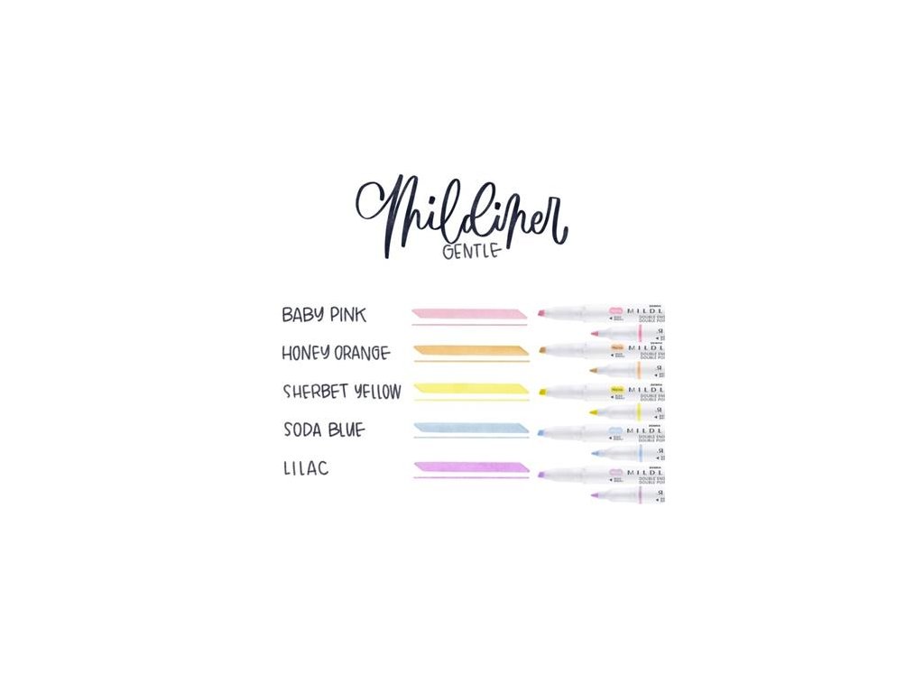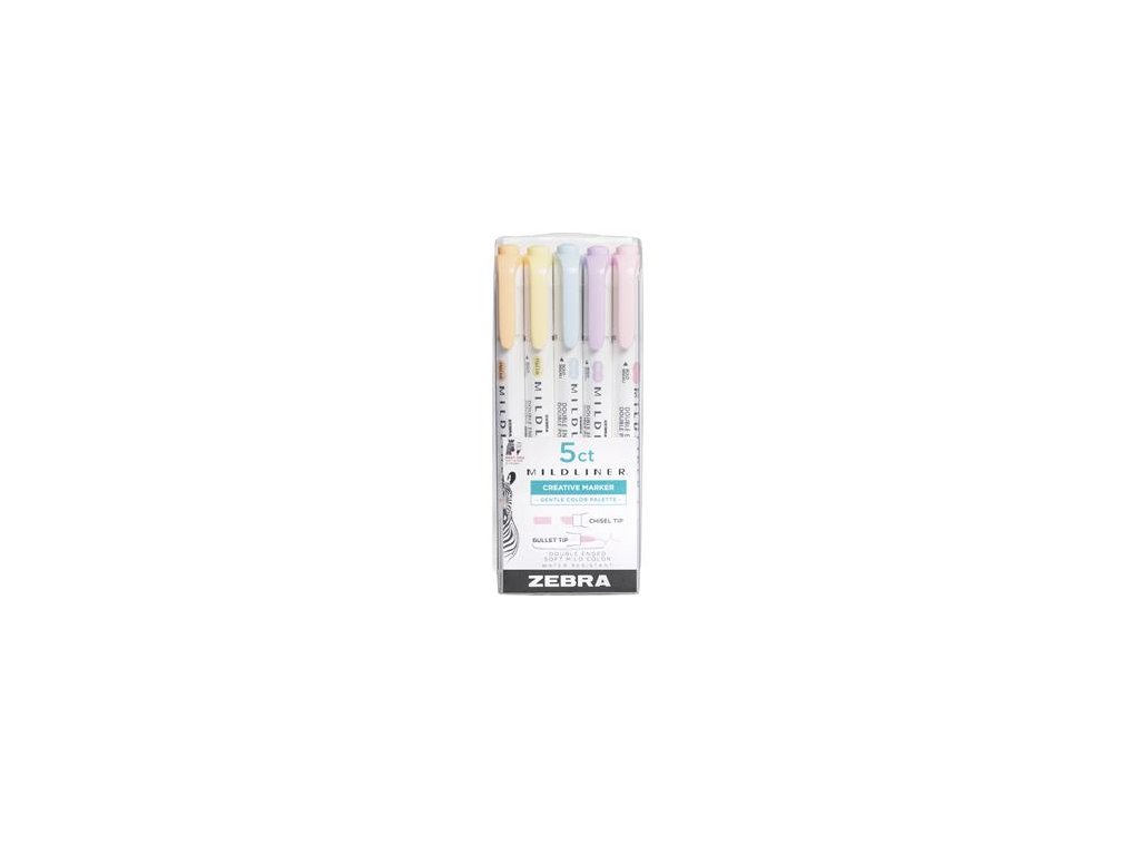 Zvýrazňovač, sada, 1,4/4 mm, obojstranný, ZEBRA "Mildliner Highlighter Gentle", 5 rôznych farieb