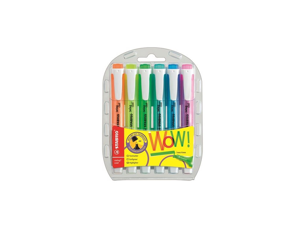 Zvýrazňovač, sada, 1-4 mm, STABILO "Swing Cool", 6 rôznych farieb