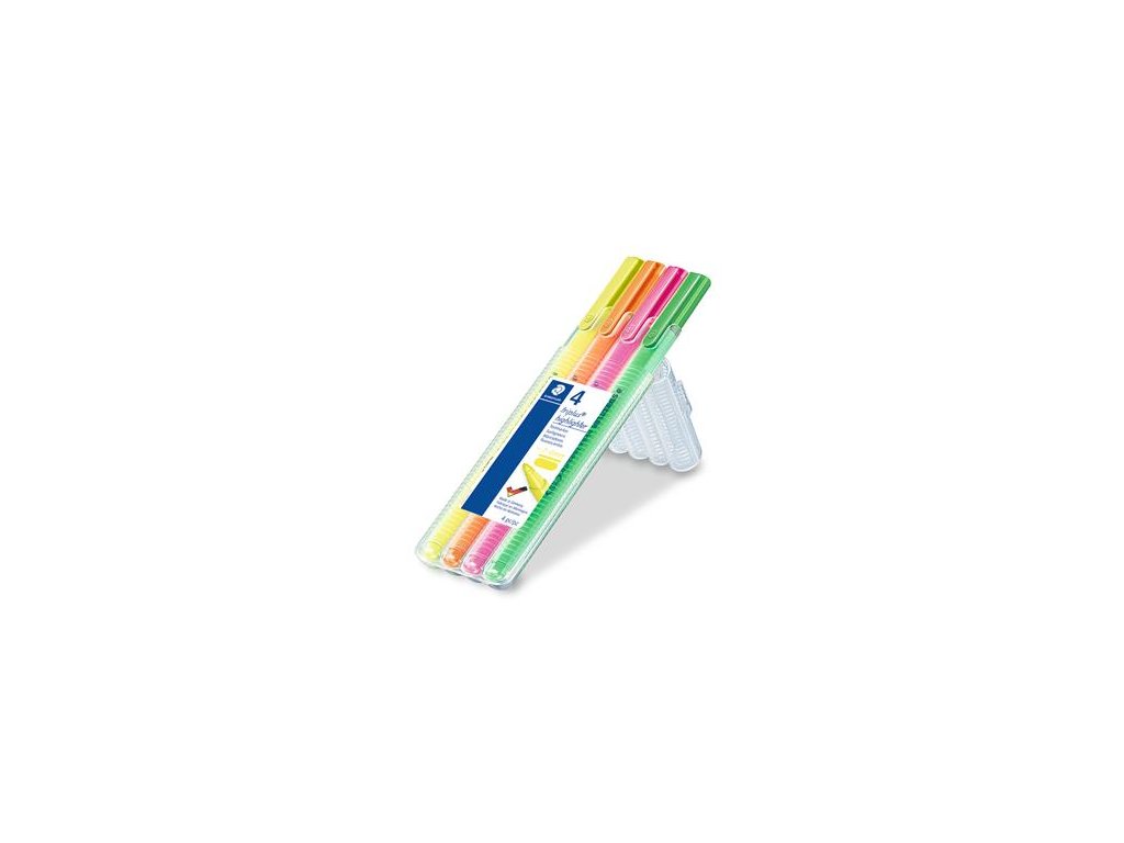 príjemne mäkký hrot - umožňuje velmi tenké aj široké písanie - ergonomický trojhranný tvar - ideálne na zvýraznenie drobných písmen - "Inkjet Safe": na tlačivách z atramentových tlačiarní nezanecháva stuopu - svetluodolný neónový atrament na vodnej báze - rýchlo schne - PP telo zvýrazňovača pre dlhú životnosť - vhodný do lietadla: automatické vyrovnávanie tlaku - balené do STAEDTLER Boxu