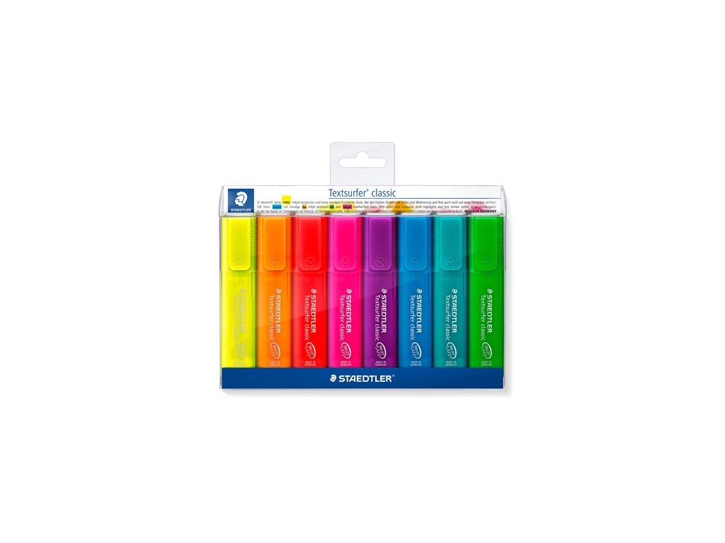 Zvýrazňovač, sada, 1-5 mm, STAEDTLER "Classic 364", 8 rôznych farieb