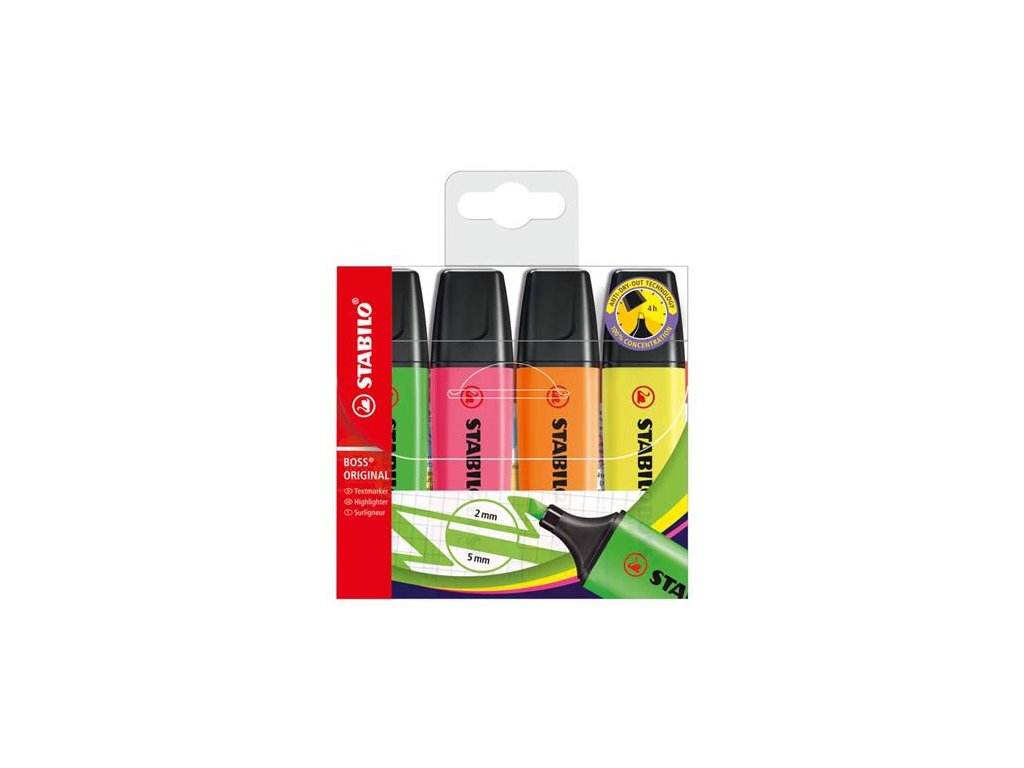 Zvýrazňovač, sada, 2-5 mm, STABILO "BOSS original", 4 rôzne farby