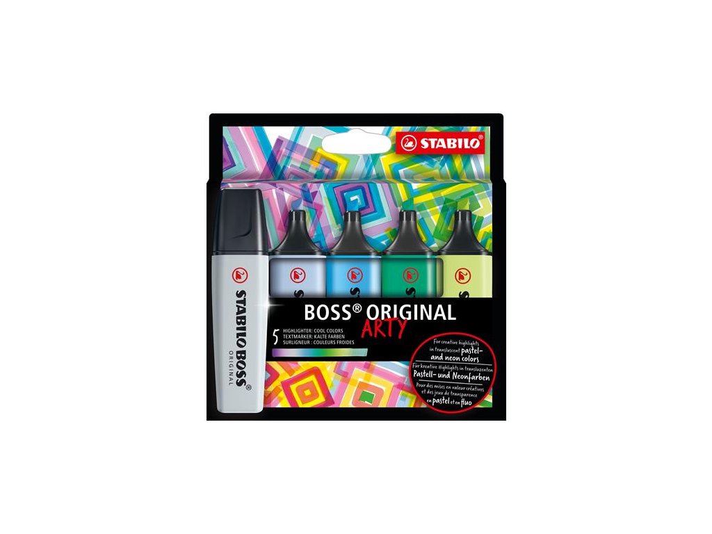 Zvýrazňovač, sada, 2-5 mm, STABILO "BOSS original Arty", 5 studených farieb