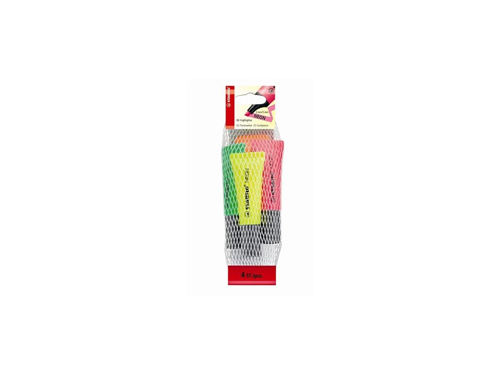 Zvýrazňovač, sada, 2-5 mm, STABILO "Neon", 4 rôzne farby