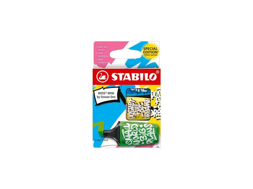 - STABILO "Boss Original" zvýrazňovač s bežným výkonom - vďaka technológii proti vysušeniu nevyschne až 4 hodiny bez viečka - hrúbka písma 2-5 mm - atrament na vodnej báze - farby v sade: zelená, žltá, modrá Značka: STABILO Výrobca: STABILO international GmbH Magyarországi Fióktelepe Adresa: 1033 Budapest, Szőlőkert köz 7/a., Hungary Web: www.stabilo.hu Email: info.hu@stabilo.comDodatočné parametre